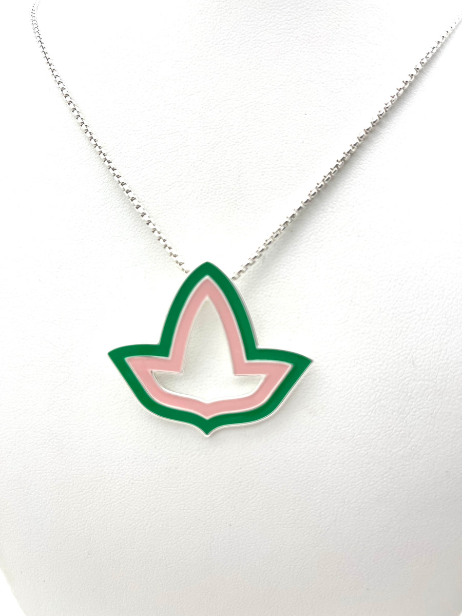 Pink and Green™ Enamel Open Ivy Leaf Necklace - Small