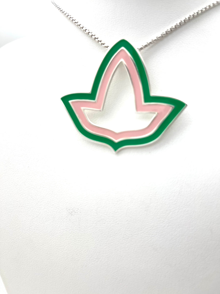 Pink and Green™ Enamel Open Ivy Leaf Necklace - Large