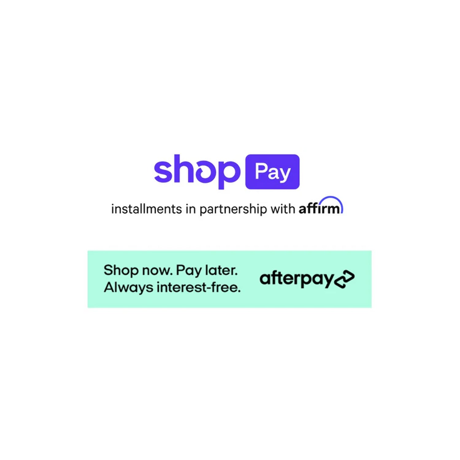 We're excited to offer you two payment options Shop Pay and AFTERPAY that will allow more ways to buy now and pay later. There are no late or hidden fees, and you'll never pay more than you agree to up front.