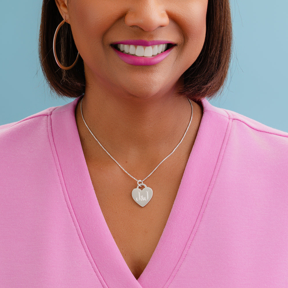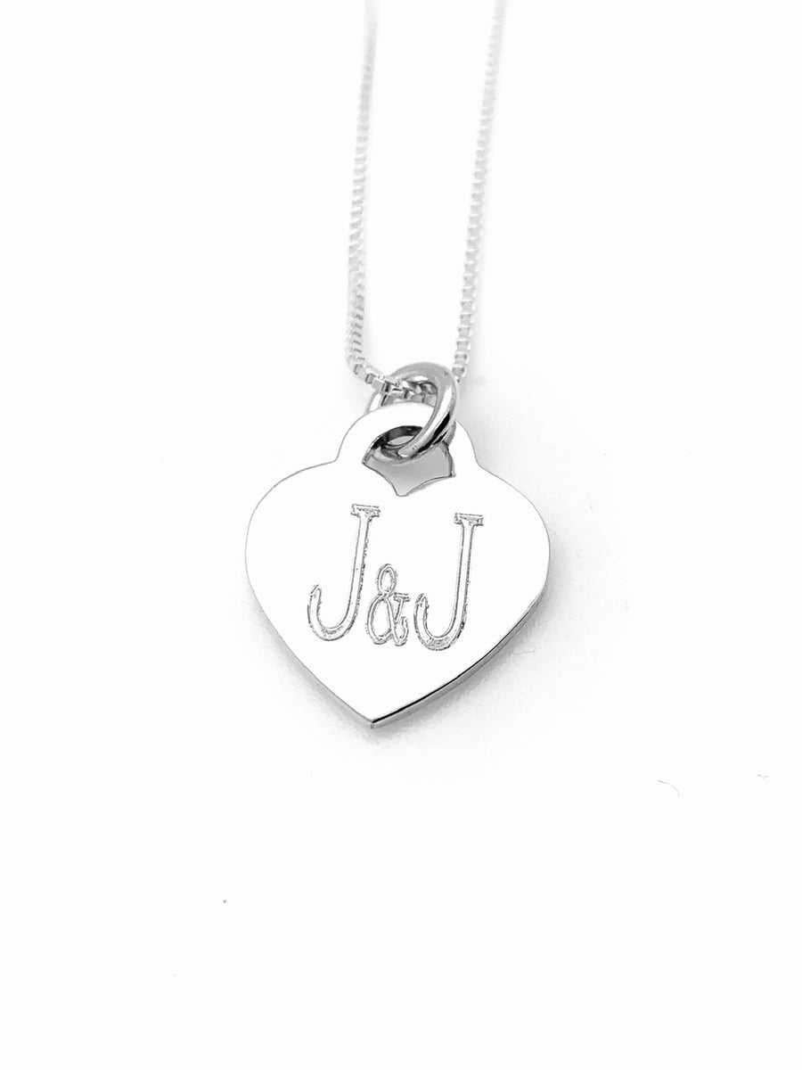 Cute layering heart necklace. Heart pendant is engraved with J & J.